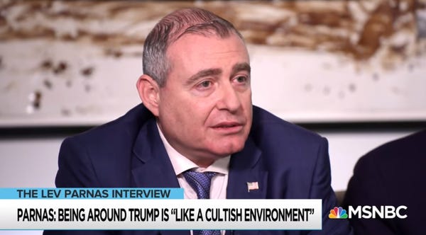 Now, you might think, "Well, Lev Parnas is indicted by the SDNY. We think he might have a reason to fear the attorney general!" But we think he's saying it's more than that. He's talking about what happens when you run afoul of the Circle of Trump, which he describes as less like organized crime, and more of a "cult." (Parnas says he regrets things he did while in that cult, like all former cult members do.)