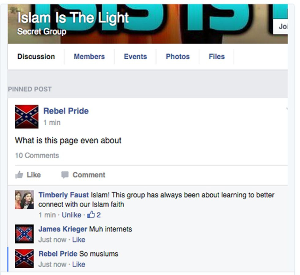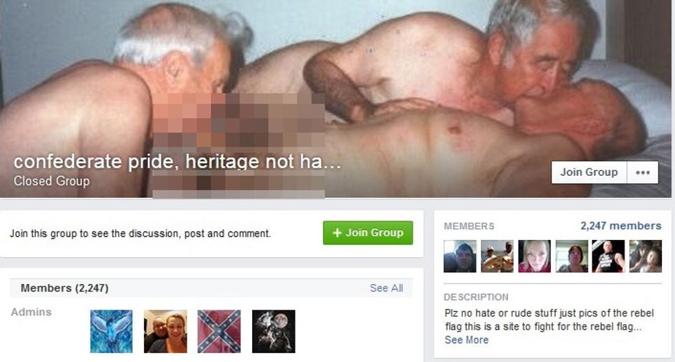 There is a terrible and wonderful thing about Facebook: Its security settings are supposed to give you lots of control over your account, but you have to be careful, especially if you're running a group, about who you give administrator access to. Like for instance if you're running a pro-Confederate flag group, and you are won over by a charming person who talks a lot about his southern heritage and how much the flag means to him, and he turns out to be a liberal with a wicked sense of humor who, once given admin privileges, kicks out all the other admins and renames the group "LGBT Southerners for Michelle Obama and Judaism." And what follows is a beautiful thing, possibly even better than the people who throw goats all over rightwing Facebook pages. Or at least as good -- we don't want to stir up discord, so we'll just say both are excellent.