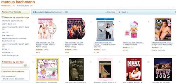 Paul Revere's Wikipedia Page : bored wingnuts : : Amazon product pages : bored libtards. Our crack network of tipsters indicates that Marcus Bachmann's Amazon products page is mysteriously currently full of whips and naked pictures of Levi Johnston IF THAT WAS NOT THE CASE SINCE ALWAYS because probably it could have been, we don't know, no one was paying any attention to "Amazon product pages" until the Internet noticed that Christine O'Donnell's page was full of vibrators and spell books. So TA-DA it is a very slow news week, and our Wonkette "special investigation" shows that Marcus Bachmann, Glenn Beck, Rush Limbaugh and Sarah Palin's "Amazon product pages" are now your one stop shop for every gold-plated set of electrified XXXL anal probes on the market. The Fox News page also includes something called "Hitler's nipples." We'll pretend we never saw that.