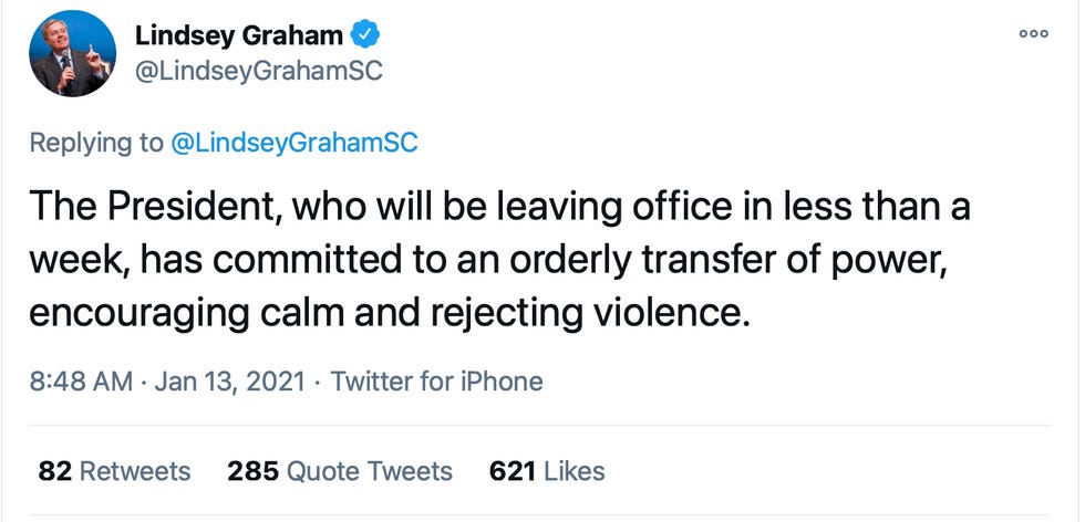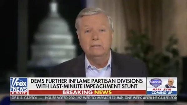 Lindsey Graham Only Supports Impeachment For Seditious Blow Jobs, Not Violent Insurrections