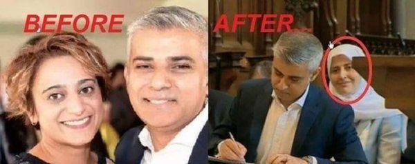 Here’s Muslim politician Sadiq Khan with his wife before the London mayoral election.