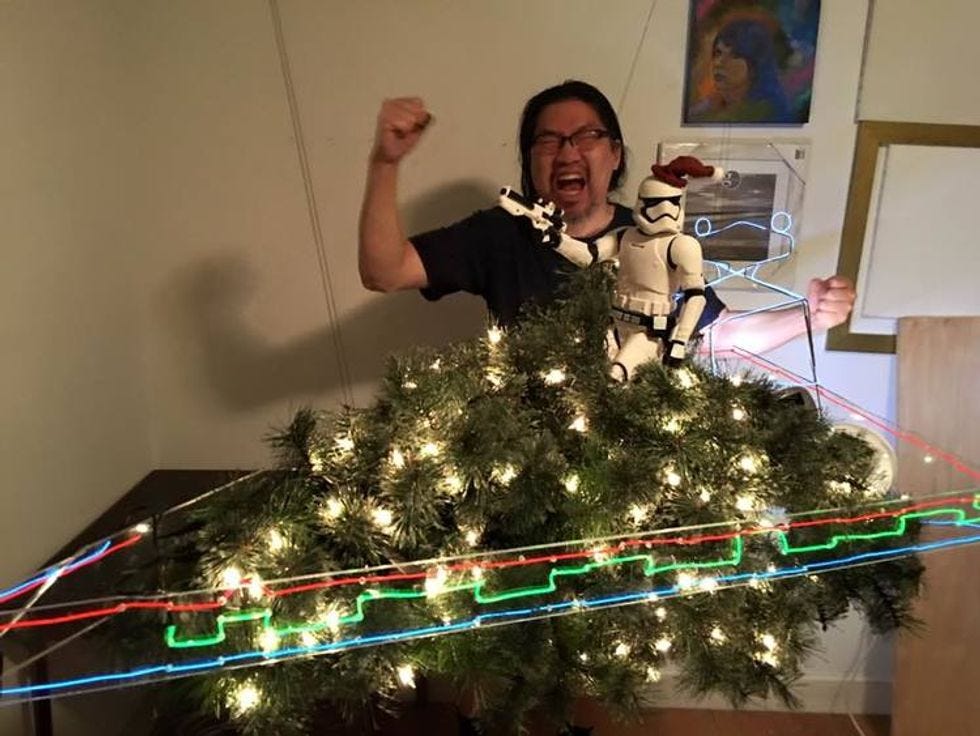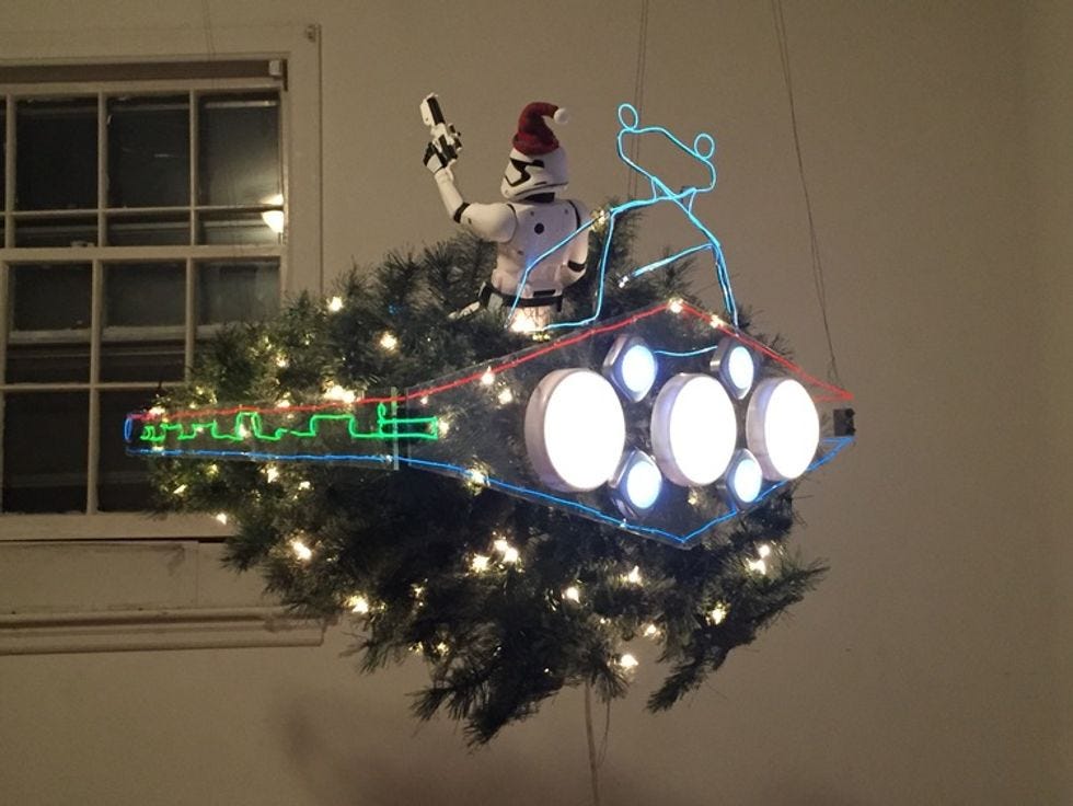 Finally, via BoingBoing, check out science fiction artist Frank Wu's awesome horizontal Imperial Star Destroyer Christmas Tree: