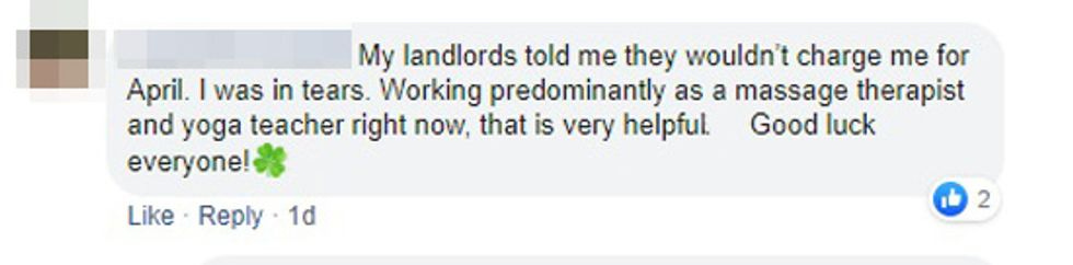 Because I have the good fortune and of being able to afford it and the privilege of being in the owner class, I just let them know I would not be collecting rent in April.