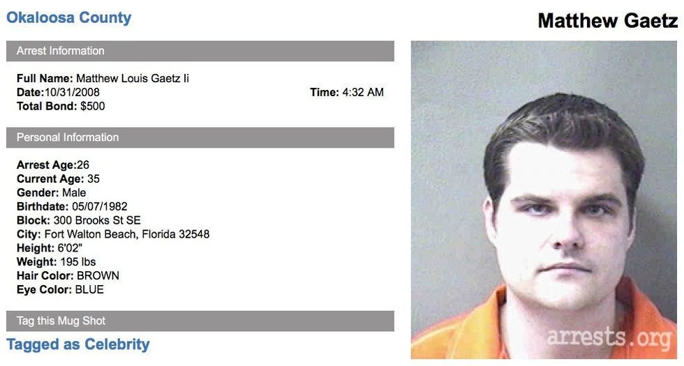 Did we mention that Gaetz has had a lot of run-ins with the badge-toting driving monitors known as policemen? Lots of speeding tickets, rear-ended a constituent, and so on. (At this point, we'd like to be clear about the fact that rumors about Gaetz's alleged dead college roommate and him having "seven DUIs" and things of that sort are SNOPES DOT COM "MOSTLY FALSE." If any legitimate reporting comes out demonstrating otherwise, we will absolutely let you know.)