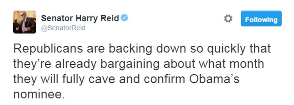 Hahahaha, you think this is going to go well for Republicans? This tweet from badass Senate Minority Leader Harry Reid begs to differ: