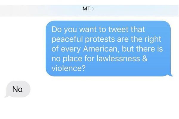 I felt compelled to show that text because it was a lot of context I thought, and again, knowing Melania like I did, I was so disappointed and discouraged and sickened that she wouldn’t stand up and just say simply, "There should be no violence."