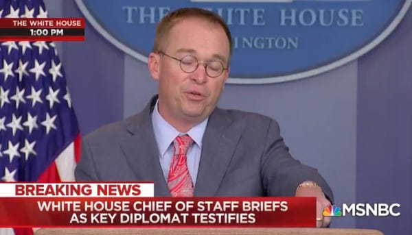 Mulvaney's briefing has also reportedly completely "blown up" today's ongoing interview with EU Ambassador Gordon Sondland. So that's fun!