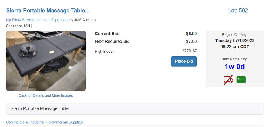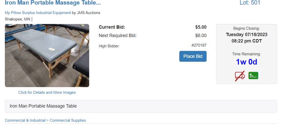 Portable Massage Tables! No really, there's a bunch of 'em and they're all like five or six dollars, or at least their opening bids are that low. Go buy yourself some of the MyPillow Guy's massage tables and use 'em as stocking stuffers!
