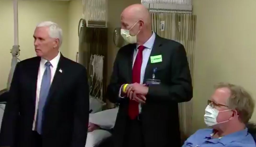 The VP, who has been spearheading the White House's coronavirus response since Secretary of Health and Human Services Alex Azar found his head on a spear , was informed that the hospital has a strict masking policy for everyone on the premises.