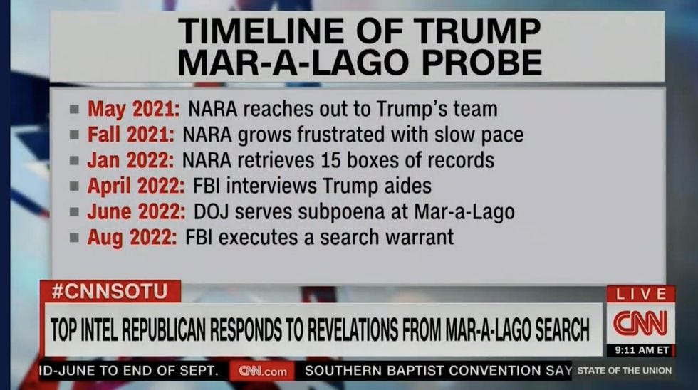 TURNER: Well, we have a number of concerns, Brianna, obviously. One is whether or not the raid itself was justified. [...] If it rises to the level of an immediate national security threat, which is what it would take to actually raid the president's home, because, as you know, they had a number of options available to them, including just going to court and asking for the courts to enforce the subpoena that they had.