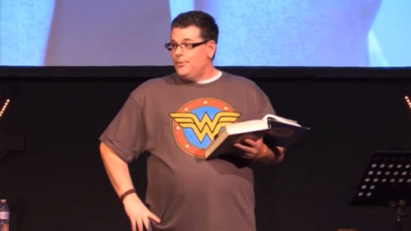 Last week, he went viral with his disturbingly sexist sermon about how much Jesus haaaates it when women "let themselves go" or gain weight after marriage. Specifically, he told women they should aspire to be trophy wives like Melania Trump — or at least "participation trophy wives," as he so cleverly quipped.