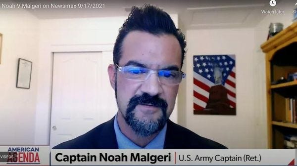 "It's clear under the UCMJ, we don't need a congressional commission to investigate the crimes of Mark Milley, all the evidence is out there. All we need to do is — he's an active duty soldier — just convene a general court martial and forget a congressional hearing," Nevada GOP congressional candidate Noah Malgeri told wingnut veteran activist Steve Sanson, as if this were something that made complete sense.