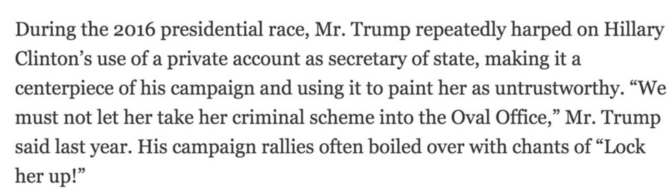 Haberman shared a byline on a Times piece about Trump White House idiots using private emails like a common Jared Kushner, and it included this paragraph, which has recently been pronounced dead from lack of self-awareness: