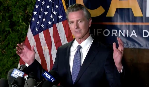 California Gov. Gavin Newsom didn't "survive" last night's recall election as so many news outlets are putting it this morning. He delivered an epic smackdown to MAGA talkshow host Larry Elder, with "No" at 64 percent to a piddling 36 percent in favor of ousting the Democrat as of current tabulations . The prototypical blue state, where Democrats outnumber Republicans almost 2 to 1, voted to retain its Democratic governor. BREAKING ... said no one ever.