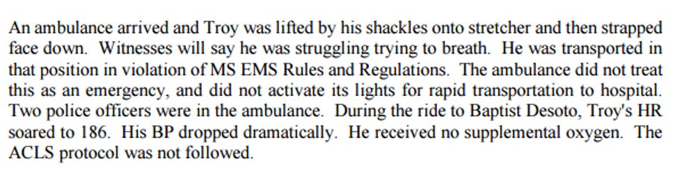 In the presser, attorneys also divulged details about that day that were heretofore unknown to the public, like the part about how Mississippi Emergency Management Services allegedly violated pretty much everything they ever learned about EMS-ing, by failing to provide Goode the medical care he obviously needed in the ambulance.