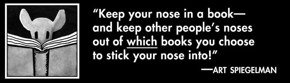 Also, by way of commenting on the news, Spiegelman sent the Daily Beast a bookmark he'd designed a few years back for Banned Books Week: