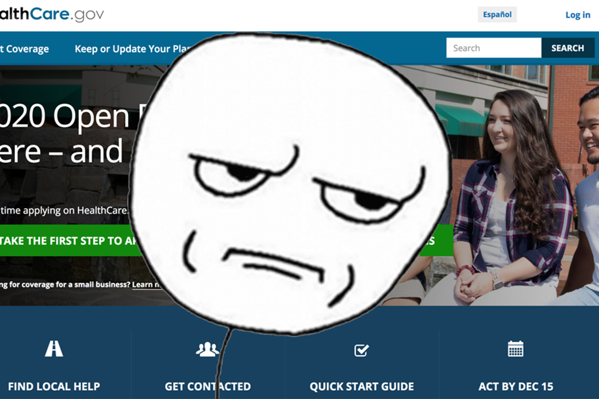 [Updatedwith new development; see end of article.] Yesterday was the open enrollment deadline for people to sign up for plans on the Obamacare exchanges for 2020. You might think the Department of Health and Human Services would take all the steps necessary to make sure Healthcare.gov, the signup site, could handle all the extra traffic expected on the final day of open enrollment -- and if not, to make damn sure anyone having problems could get signed up. Hahaha, if you expect that, you have not been paying attention! On Sunday afternoon, as traffic got heavier, this is what greeted people trying to sign up for insurance: