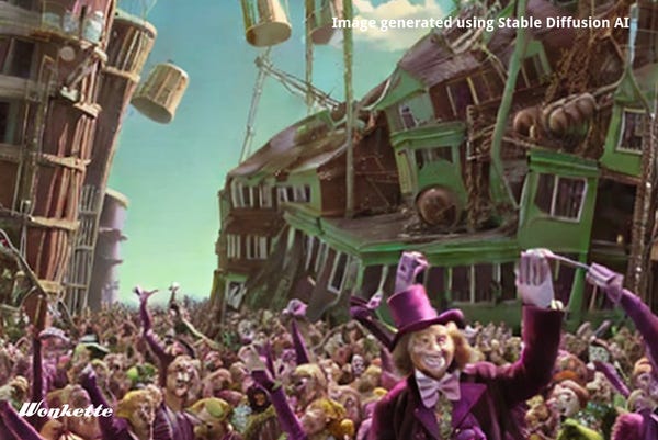 Oh, those happy-go-lucky, simpleminded slaves, laughing all day as they toil for Mr. Wonka!
