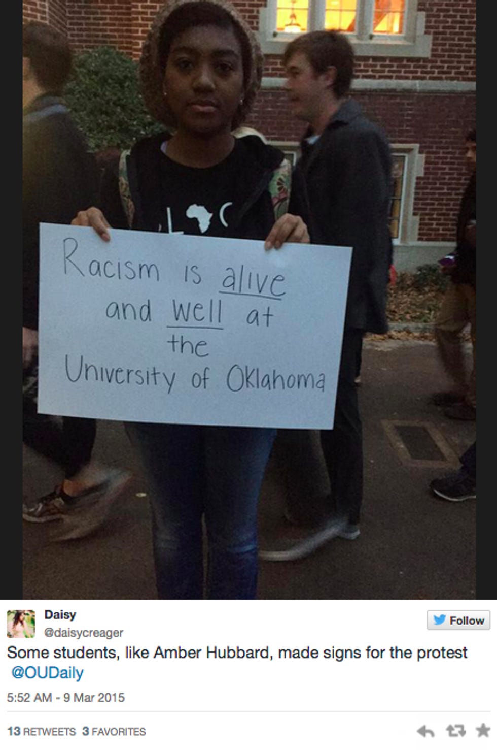 The video was tweeted by Unheard, "an alliance of Black students organized for change within campus administration and atmosphere" at the University of Oklahoma. Because the arc of justice needs to take its sweet time, the university's president, David Boren, released a statement saying (more or less) "Whoa if true!" and promised to investigate: