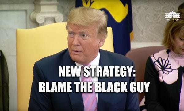 Trump is blaming the Obama administration (again) for his family separation policy that forces asylum-seeking immigrants to choose between Trump's tent cities or baby jails. After likening the death-defying journey by immigrants from Central American "shithole countries" to a "picnic" or a trip to Disneyland, Trump doubled down on blaming the black guy for a policy he literally just "You're Fired" senior DHS officials for being unable to implement. During an Oval Office press scrum ABC's Jon Karl pressed Trump on whether the policy would continue, to which Trump responded, "We're not looking to do that."