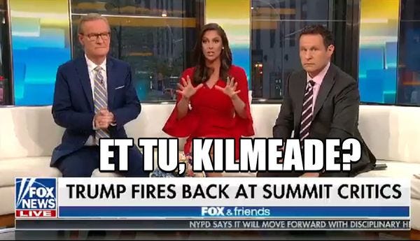 Not even Fox & Friends can defend Trump, a gun-humping Russian spy, and House Dems have huge cash haul. Your morning news brief.