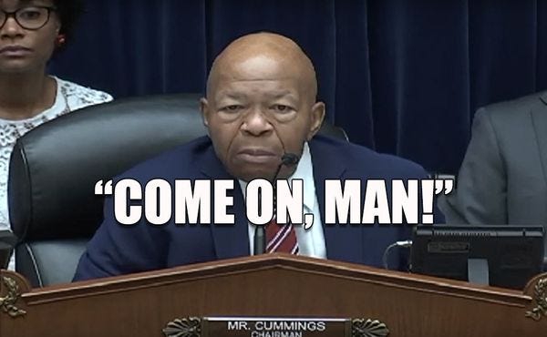 House Oversight Chair Elijah Cummings ripped acting Secretary of Homeland Security Kevin McAleenan a new asshole yesterday during a hearing on Trump's baby jails. Cummings was especially pissed when McAleenan hemmed and hawed about the "very careful" records DHS had been keeping, despite reports to the contrary. Cummings eventually lost his shit when McAleenan said DHS was "doing a great job" at dealing with detainees, shouting, "What does that mean when a child is sitting in their own feces, can't take a shower? Come on, man! What's that about?"