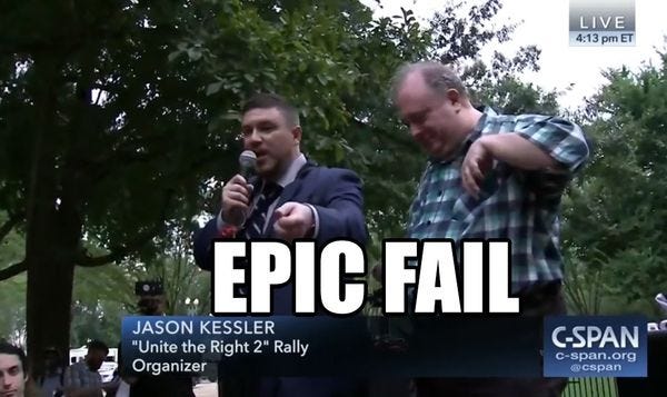 Only a few dozen neo-Nazis and white nationalists staged their little Nazi "march" on DC. Surrounded by thousands of counter protesters and hundreds of cops, the organizer, Jason Kessler, called it a "weird and imperfect" failure. [ Photos ]