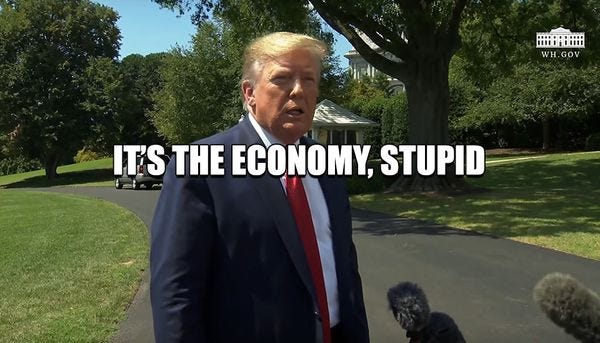 The Wall Street Journal reports federal bean counters don't know what they're going to do if (and when) Trump tanks the economy. Yesterday Trump blithered that he WAS NOT going to cut payroll taxes (after he said he might), and that he wasn't considering additional tax cuts for the super rich (much to the dismay of Ted Cruz ) because he was worried it might be seen as "somewhat elitist." Meanwhile, the Congressional Budget Office says Uncle Sam is way more broke than originally thought -- almost a trillion bucks by FY 2020 -- directly contradicting reports from the White House that Trump's tax cuts (for the super rich) and his trade war were doing bigly good things for America's piggy bank.