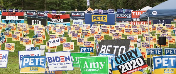 This weekend 2020 Democrats went all-in on Iowa. On Friday, Joe Biden shit the bed (again) when he criticized the moderator of an LGBT forum in Cedar Rapids. On Saturday, 17 candidates participated in the annual Steak Fry. After candidates made their stump speeches to a record, rain-soaked crowd of over 12,000, a new poll from CNN and the Des Moines Register found Sen. Elizabeth Warren is now in a statistical dead heat with Joe Biden, edging him out with 22 percent to Biden's 20 percent. [ Poll ]