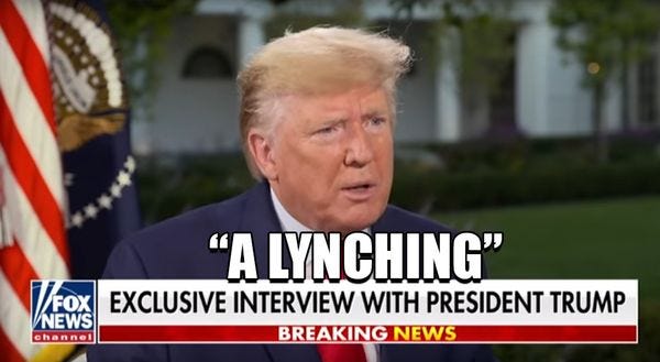 Trump went on Hannity last night to lie, bitch and moan for another damn hour about journalists who are mean to him by reporting all the horrible shit he says and does. Trump then threatened to cancel subscriptions of the Washington Post and the New York Times. (Spoiler Alert: He won't.) The Twitter shitter-in-chief has since been on another tirade this morning, and framed his impeachment as "a lynching." [ Video ]