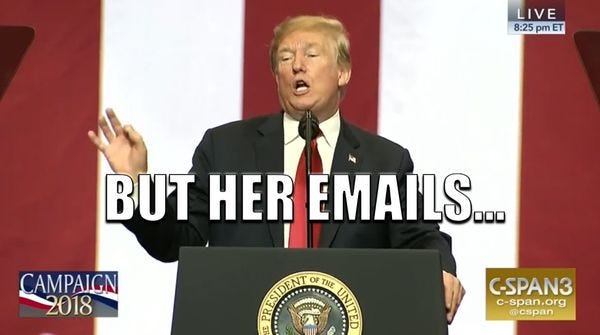 BUT WAIT, THERE'S MORE! The Trump campaign was "very happy" the Russians dumped HER EMAILS since it distracted from Sen. Ted Cruz telling Republicans to vote their conscience at the 2016 Republican National Convention. Additionally, CNN is reporting that Mike Flynn was thought to have the most connections with Russia, Trump and his inner-circle of idiots had a hard-on for HER EMAILS, and they kept Sean Hannity in the loop about everything. [ Mueller's Notes ]