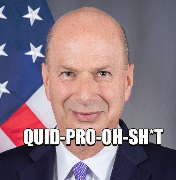 US Ambassador to the EU Gordon Sondland revised his testimony to House impeachment investigators to say that AWKSHULLY there was one of those quid-pro-quo things. Sondland says he remembers things a little bit better now that he's heard the rest of the State Department will embussen Trump World.