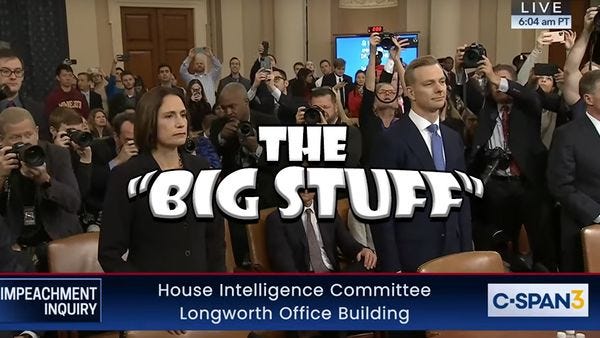 In the fifth and final scheduled impeachment hearing before the House Intel committee, former National Security Council Russia adviser Dr. Fiona Hill and David Holmes, a US diplomat in Ukraine, testified how Trump administration officials attempted to leverage military aid in exchange for the furthering of an investigation of Trump's political rivals based upon a Russian-backed conspiracy theory. In her opening statement, Hill immediately quashed the conservative effort to delegitimatize the impeachment inquiry by creating an "alternate narrative" that it was Ukraine -- not Russia -- that fucked around in the 2016 US election. Hill said, "These fictions are harmful even if they are deployed for purely domestic political purposes."Holmes testified that he heard US ambassador to the EU Gordon Sondland speak with Trump in an open-air restaurant on an unsecured cellphone about the pressure campaign, with Sondland later clarifying to Holmes that Trump didn't care about the Russian invasion and hot war in Ukraine, only about "big things" -- which Hill explained was "code for the Bidens." Holmes would later say that he had "never seen anything like it."