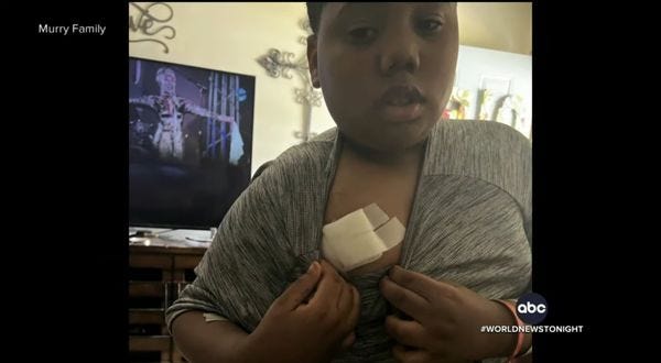 No, it didn’t. CNN reports that after the shooting, Aderrien was given a chest tube and placed on a ventilator. He suffered a collapsed lung, fractured ribs, and a lacerated liver, according to his mother. We remind you that he is 11. The police were supposed to protect him and his family from a violent man, but another violent man with a badge shot him in the chest.