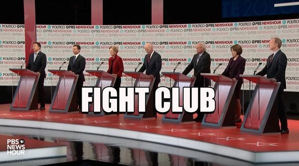 Last night's umpteenth Democratic presidential debate was another slobber knocker, and everyone had it in for South Bend, Indiana, Mayor Pete Buttigieg. Amy Klobuchar spent much of the evening hurling salad combs in an effort to stand out from all the other folksy white people on stage (and Andrew Yang). Political wizards think Joe Biden had a great night since he didn't put his foot in his mouth, but the real winners may have been Warren and Klobuchar, while Butters clearly had a terrible night. NPR notes that Klobuchar and Sen. Bernie Sanders spoke the most . If you decided to drown yourself inside a bottle, The Daily Show has you covered with a solid wrap-up. [ Quick Take ]