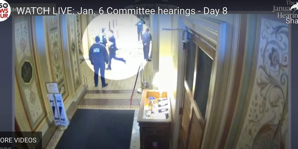 9: 00Cut to absolutely chilling footage from Capitol police as they evacuated the building and tried to evade the mob.