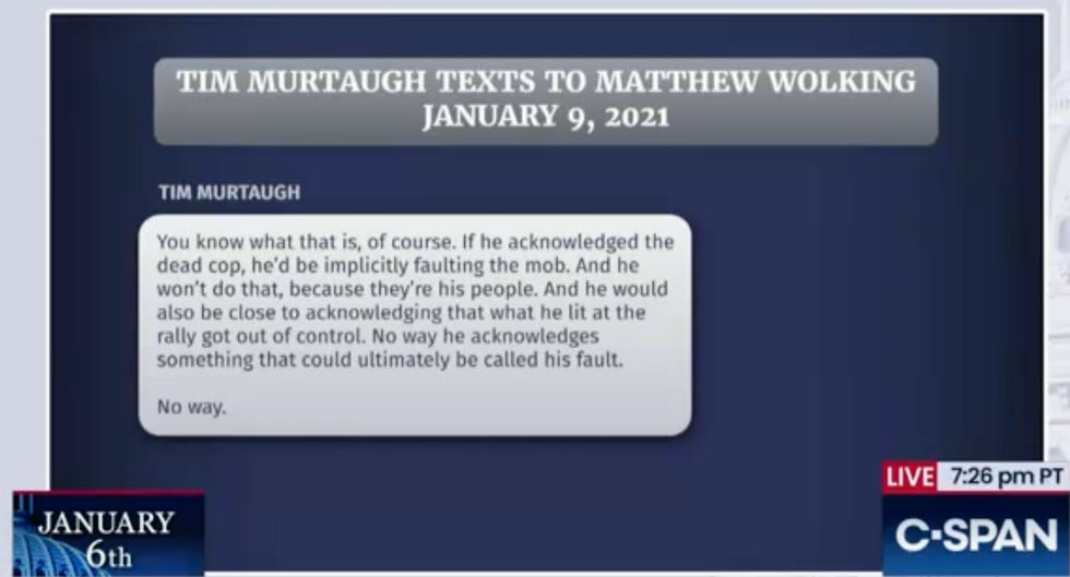 10: 28Some very ugly texts between Trump campaign officials saying he couldn't condemn the violence, even the killing of Capitol Police, because it would be an admission of guilt.