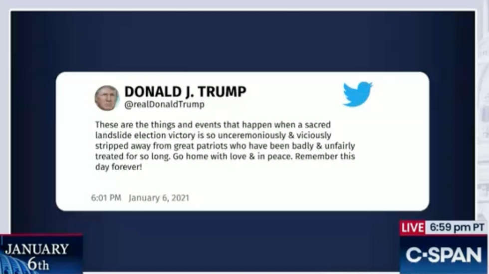 The number of the day is 187. That's how many minutes it took for Trump to tell his goons to go home after the Capitol had been breached on January 6, 2021. During that time, he was doing what he did for four straight years in the White House — watching television and tweeting.