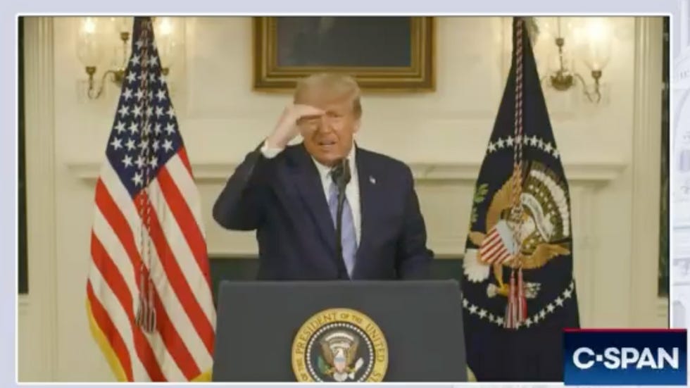 Oh, boy, we're going to get the outtakes from the Rose Garden video, where Trump rejected the written speech prepared for him