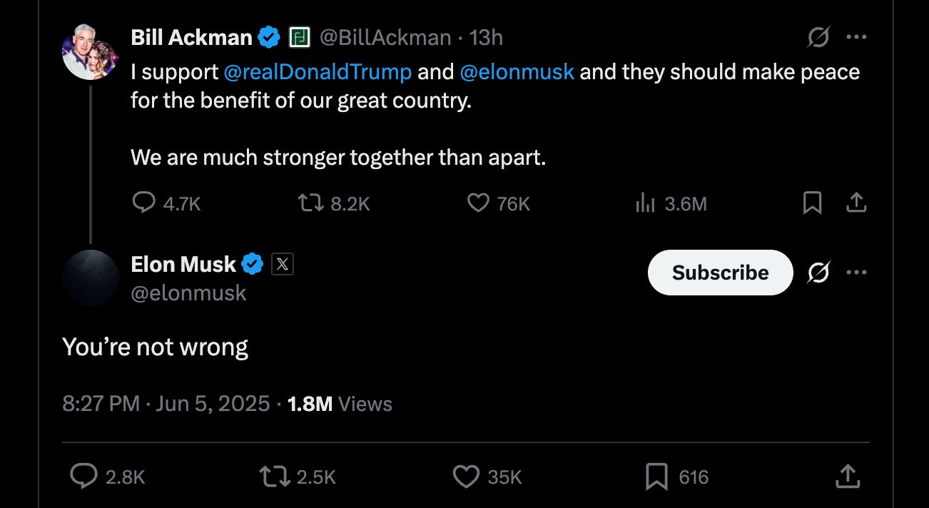 So was hedge fund pube and Trump/Elon fluffer Bill Ackman: