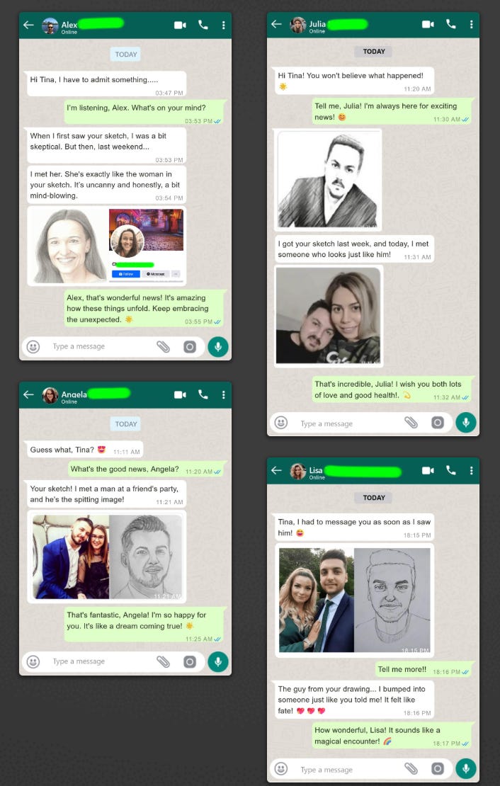 This person claims to be a "psychic artist" who will draw your soulmate for you for $30. However, the pictures she sends you are clearly AI generated, not hand drawn, and not personalized. This definitely feels like a scam operation although there is a refund option which I used so I was able to get my money back, but I still wanted to report this because it feels predatory.