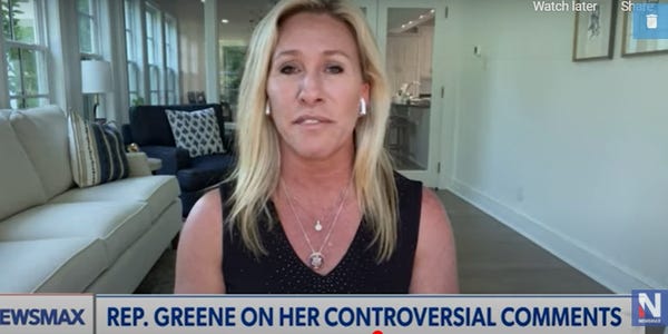 Rep. Marjorie Taylor Greene (Q-Bugfuck) is a patriot, dammit. That's why she told those brave citizens in January of 2020 that "You can’t allow it to just transfer power 'peacefully' like Joe Biden wants and allow him to become our president because he did not win this election. He’s guilty of treason. It’s a crime punishable by death is what treason is. Nancy Pelosi is guilty of treason."