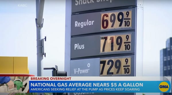 The price of gas is expected to reach a national average of $5 a gallon within the next two weeks. That’s more than a 15 percent increase since March when prices broke the previous record of $4.11 a gallon. Gas prices have since risen so quickly that the national average has set 27 records in the past 28 days. At least 15 states have already surged past the $5 mark as of Wednesday.