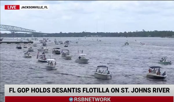 Today in Florida, a whole bunch of people are sailing their boats down the St. Johns River to declare their great love for Governor Ron DeSantis ... and Right Side Broadcasting Network, one of the most batshittiest of the batshit right wing pretend news networks, was there to cover it all.