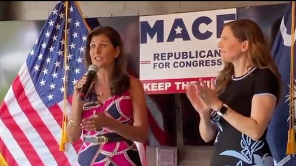 Mace has mixed it up a few times with Rep. Marjorie Taylor Greene, but she otherwise gets along fine with other Republicans. Former South Carolina Governor and UN ambassador Nikki Haley presumably feels comfortable enough with the polling data to publicly defy Trump and endorse Mace. She spoke on Mace’s behalf at a campaign rally Sunday.