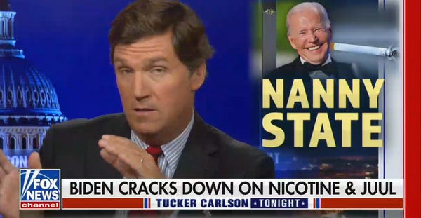 Tucker whined that “[n]icotine is one of the few remaining pleasures for ordinary people, particularly working class men, and now they’re taking it away."