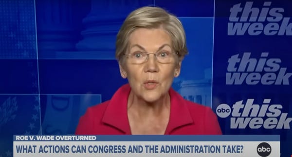 Friday, after Dobbs dropped, Warren tweeted, "We are not powerless. Here’s what I’m fighting for: Expanding our Senate majority so we can eliminate the filibuster and codify Roe. Expanding the Supreme Court to rebalance this institution. Defending abortion rights in states through ballot measures and down ballot elections.”