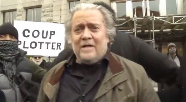In November, when he got indicted, Bannon stood on the courthouse steps and promised to make this case “the misdemeanor from hell for Merrick Garland, Nancy Pelosi, and Joe Biden.” His theory is that it's somehow legal to give the finger to Congress if the subpoena is biased, and so he demands to put half the committee on the witness stand.