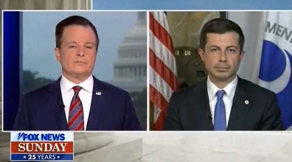 Transportation Secretary Pete Buttigieg was asked about this on Fox News, because unlike a lot of decent people, he goes on Fox News. We are not arguing whether it's generally a good or bad idea for normal, honest people to go on Fox News, just kidding yes we are, it's bad. It legitimizes the network as a place of real news, and its hosts, especially the night time ones, are trained to shout over people and filibuster liberal guests and use them as target practice for armpit farts. It's not a serious operation.