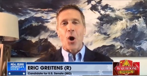 Greitens has fallen to third place in recent polls, and that’s a sobering wake-up call for bigger loser candidates Billy Long and Mark McCloskey, who are at fourth and fifth. A Trafalgar poll released Monday has Attorney General Eric Schmidt in the lead with 26.5 percent. Rep. Vicki Hartzler, who has Donald Trump’s un-endorsement, is in second place with 24.4 percent, and Greitens, credibly accused of domestic abuse, has the support of 20.2 percent of voters, who should feel ashamed.